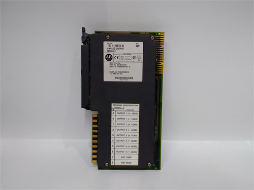 **產(chǎn)品說明:**艾倫-布拉德利1771-OFE2是一個(gè)模擬輸出模塊。它被設(shè)計(jì)成放置在PLC-5系統(tǒng)的任何I/O插槽中,為系統(tǒng)提供兩個(gè)模擬輸出通道。
