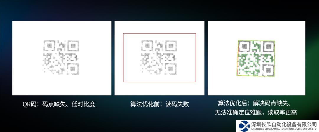 除改善算法效率外,OPT Smart3視覺軟件還重點(diǎn)優(yōu)化了算法的抗干擾能力,通過新開發(fā)算法功能和改進(jìn)底層代碼,進(jìn)一步提升檢測(cè)精度和穩(wěn)定性,場(chǎng)景適應(yīng)能力更強(qiáng)。以讀碼算法為例,即使在碼點(diǎn)缺失、極低對(duì)比度的情況下,Smart3視覺軟件也能精準(zhǔn)讀碼。