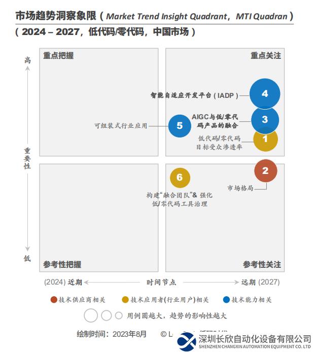 報(bào)告基于DTE矩陣,強(qiáng)調(diào)從低代碼/零代碼應(yīng)用發(fā)展的宏觀技術(shù)視角觀察行業(yè)現(xiàn)狀和未來趨勢,并從中發(fā)現(xiàn)機(jī)會(huì)。這也是Market Insight報(bào)告中一項(xiàng)值得關(guān)注的創(chuàng)新研究內(nèi)容。