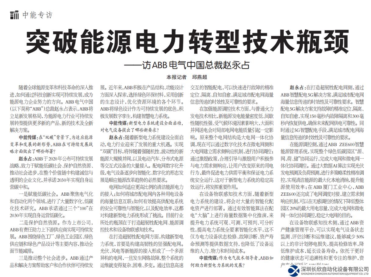 中能傳媒:作為電氣技術(shù)領(lǐng)導(dǎo)者,ABB如何助力新型電力系統(tǒng)的發(fā)展?目前ABB取得了哪些成功項目實踐?