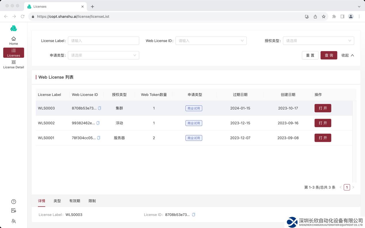 Web License網(wǎng)頁(yè)端界面