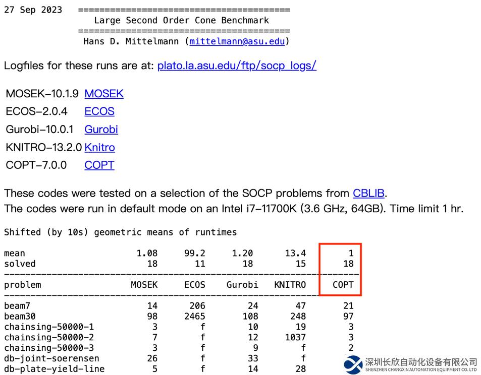 COPT 7.0 二階錐規(guī)劃(SOCP)求解模塊測(cè)評(píng)結(jié)果