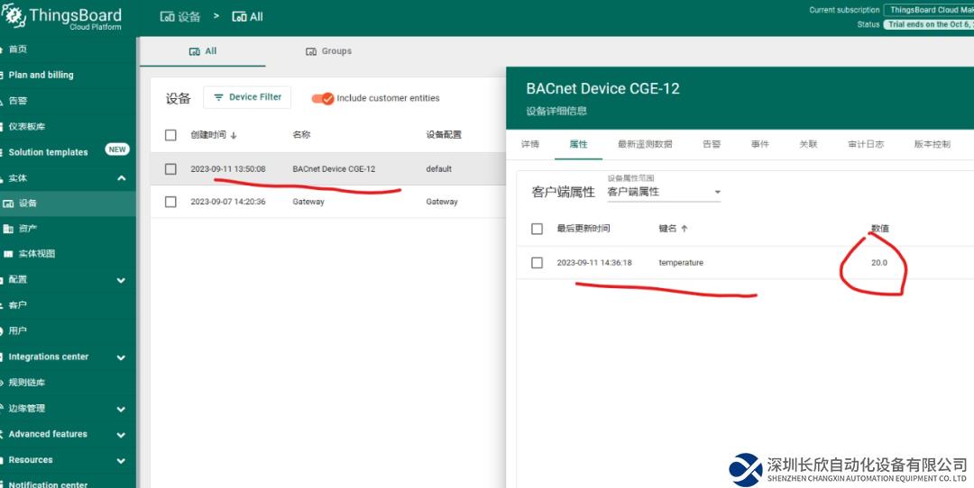 可以看到網(wǎng)關(guān)已經(jīng)成功添加了我們的設(shè)備,并且采集到了設(shè)備的temperature數(shù)據(jù)。