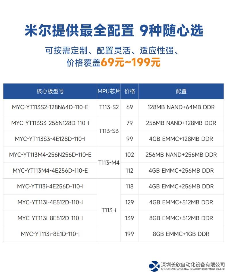 全志T113系列芯片是目前比較受歡迎的國產(chǎn)入門級嵌入式工業(yè)芯片。米爾是基于T113芯片開發(fā)較早、提供配置最全的廠家,目前是唯一一家提供T113-S和T113-i兩種芯片核心板的廠家。更好的消息是,T113-i的核心板兼容T113-S的核心板,同一個硬件設計,有多種更適合的選擇。2種芯片,6種配置,總有一種更貼近您的項目需要。
