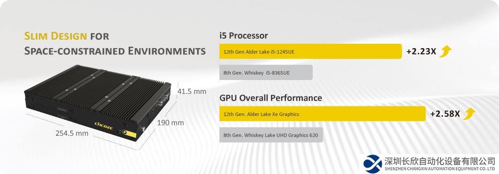 P2202系列包含了標準機型P2202以及具有PCIe擴充的P2202E兩款型號,采用了i3/i5 Intel Alder Lake-P (U-Series) CPU,比起Whiskey Lake平臺機種效能提升至高2.23x,內(nèi)建Intel Iris Xe顯示晶片圖形運算效能也較前代機種提高至多2.58x,同時支援DDR5 64GB 4800MHz記憶體,優(yōu)秀的效能搭配其輕薄的機身設計(254.5 x 190 x 41.5 mm,Model: P2202),P2202 系列能夠符合各式不同的應用環(huán)境需求。