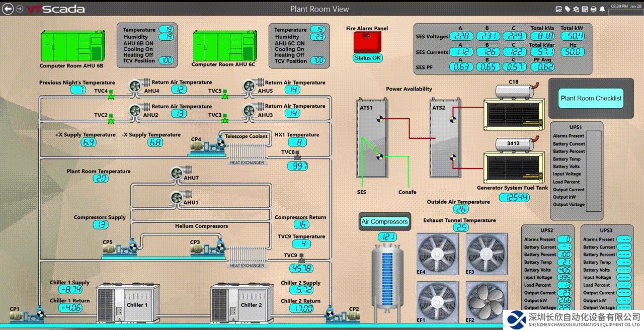 導入VTScada后,這一切困難迎刃而解。VTScada擁有強大的硬件兼容性,支持超過 100 種業(yè)界標準和專屬 I/O 通訊協(xié)議,能夠一站串聯(lián)不同品牌產(chǎn)品組成的復雜系統(tǒng),電氣工程師們很快將 VTScada 與觀測臺的多品牌 PLC 及 SNMP 設備串聯(lián)在一起。