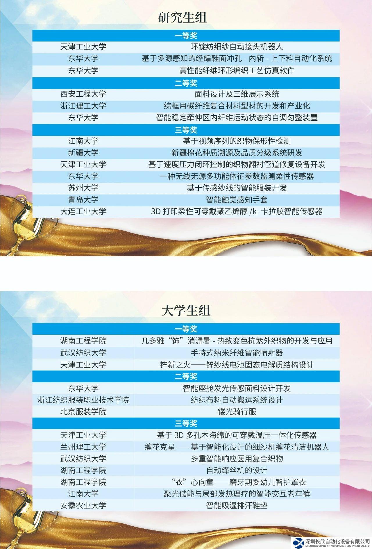1月20日,第三屆“匯川杯”紡織智能學(xué)生設(shè)計(jì)大獎(jiǎng)賽決賽在蘇州舉辦。來自全國高校近30個(gè)智能紡織項(xiàng)目組的參賽選手進(jìn)行了激烈角逐。評(píng)審專家從選題的新穎性和實(shí)用性,方案設(shè)計(jì)的創(chuàng)新性和合理性,詳細(xì)設(shè)計(jì)的可行性、工藝性與先進(jìn)理論技術(shù)的應(yīng)用,以及應(yīng)用前景等五個(gè)方面進(jìn)行了評(píng)分,最終研究生組評(píng)選出一等獎(jiǎng)3名,二等獎(jiǎng)3名,三等獎(jiǎng)7名。大學(xué)生組評(píng)選出一等獎(jiǎng)3名,二等獎(jiǎng)3名,三等獎(jiǎng)7名。