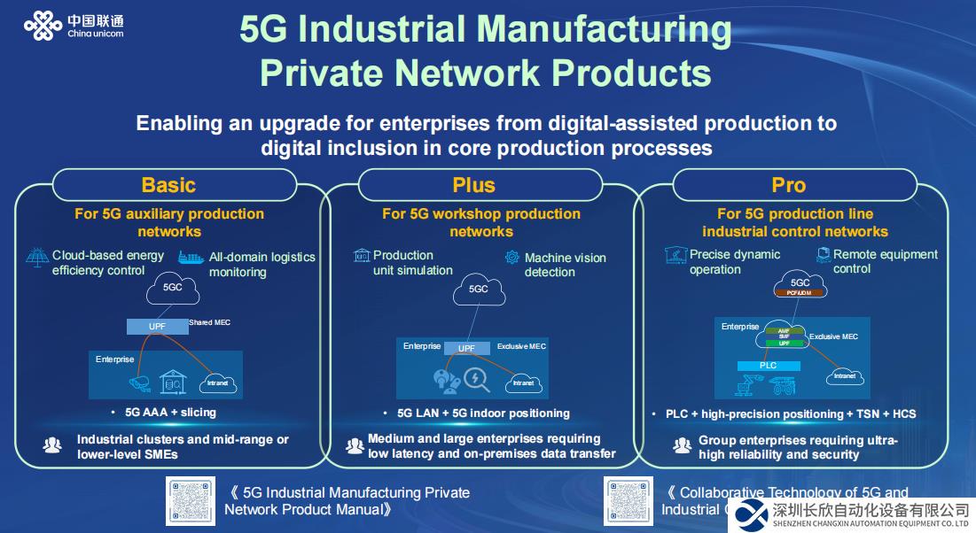5G專網(wǎng)為工業(yè)制造帶來顯著優(yōu)勢,但如何選擇適合的產(chǎn)品成為很多企業(yè)頭疼的問題。中國聯(lián)通此次發(fā)布的5G工業(yè)制造專網(wǎng)產(chǎn)品分為三個版本,分別是Basic版、Plus版和Pro版,為不同的場景量體裁衣,無論是行業(yè)龍頭還是中小企業(yè),都能找到適合自己的方案。