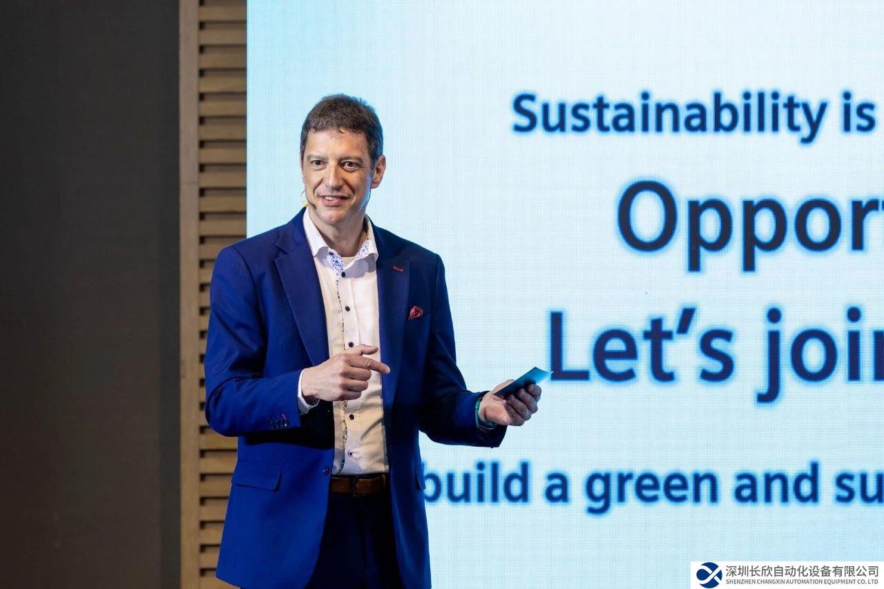 西門(mén)子中國(guó)副總裁兼中國(guó)及亞洲、澳大利亞區(qū)域供應(yīng)鏈管理部負(fù)責(zé)人Michael Haendel先生發(fā)表 “加速可持續(xù),生態(tài)共未來(lái)” 的主題演講。