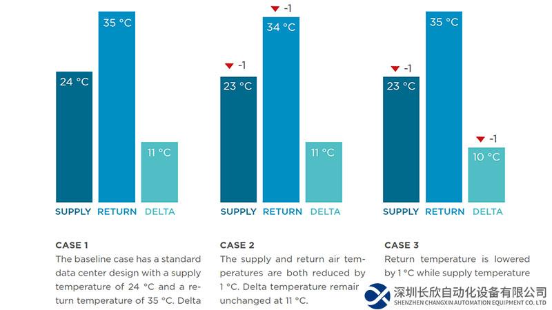 案例二中,供給和回風(fēng)溫度降低1 °C(delta-T保持不變)。