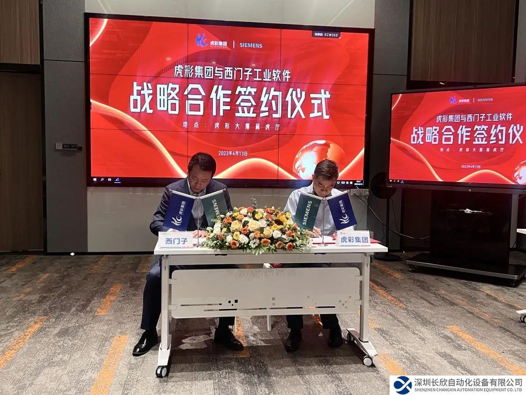 4月13日,虎彩集團與西門子數(shù)字化工業(yè)軟件正式簽署戰(zhàn)略合作協(xié)議?;⒉始瘓F董事長陳成穩(wěn)、西門子數(shù)字化工業(yè)軟件中國區(qū)副總裁雷曉疆分別代表雙方企業(yè)簽署戰(zhàn)略合作協(xié)議。