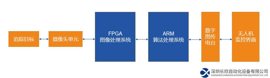 跟蹤目標(biāo)-圖像采集模塊-FPGA圖像處理系統(tǒng)-ARM控制處理系統(tǒng)-無(wú)人機(jī)實(shí)時(shí)監(jiān)控系統(tǒng)