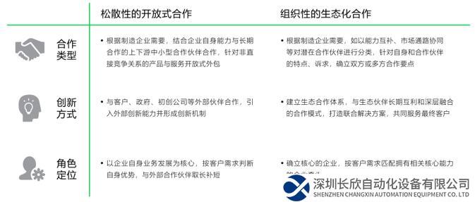 在當(dāng)下中國綠色智能制造的發(fā)展進(jìn)程中,工業(yè)基礎(chǔ)薄弱、關(guān)鍵環(huán)節(jié)突破困難較多、全球性供應(yīng)鏈?zhǔn)茏?、底層硬件普及和?shù)據(jù)積累、制造企業(yè)改革路徑方向不明確等問題依然存在,既需要企業(yè)內(nèi)部跨部門協(xié)作,也需要整合外部資源彌補(bǔ)自身的不足,構(gòu)建生態(tài)圈,從開放式合作邁向生態(tài)化合作。