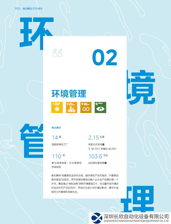 2023年4月,美的集團(tuán)正式發(fā)布2022年度ESG報(bào)告,這也是美的集團(tuán)發(fā)布的第二份ESG報(bào)告。報(bào)告的編寫參考了聯(lián)合國(guó)可持續(xù)發(fā)展目標(biāo)(Sustainable Development Goals)的17個(gè)新發(fā)展目標(biāo),即可持續(xù)發(fā)展目標(biāo)旨在從2015年到2030年間以綜合方式徹底解決社會(huì)、經(jīng)濟(jì)和環(huán)境三個(gè)維度的發(fā)展問題,轉(zhuǎn)向可持續(xù)發(fā)展道路。17個(gè)可持續(xù)發(fā)展目標(biāo)也是目前企業(yè)普遍使用的、作為ESG報(bào)告的重要指導(dǎo)工具。