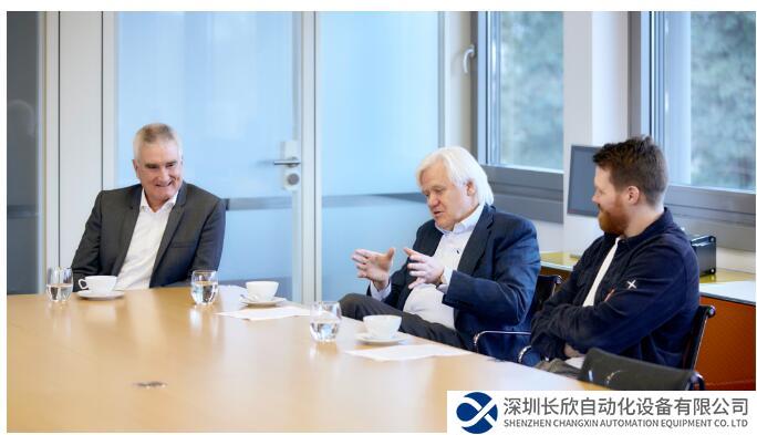 Hans Beckhoff(中間)和 Martin Rostan(左)回顧 EtherCAT 技術過去 20 年的發(fā)展歷程并與代表下一代管理層的 Johannes Beckhoff(右)分享了他們多年積累的經(jīng)驗