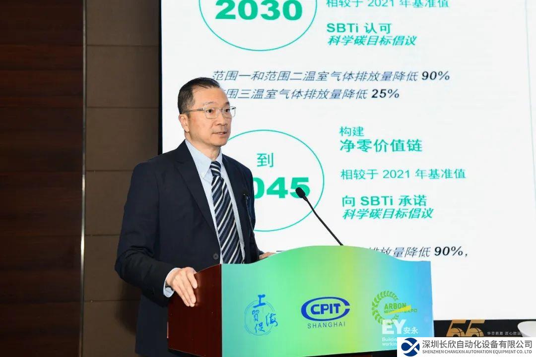 王毅峯先生在發(fā)言中介紹了艾默生的業(yè)務(wù)發(fā)展動態(tài)以及“綠色行動、綠色方案及綠色合作”的環(huán)境可持續(xù)發(fā)展框架。艾默生已做出鄭重承諾,致力于實(shí)現(xiàn)自身的凈零目標(biāo):到2030年實(shí)現(xiàn)凈零運(yùn)營,并在全球范圍內(nèi)的生產(chǎn)設(shè)施使用100%清潔能源,到2045年構(gòu)建凈零價(jià)值鏈。