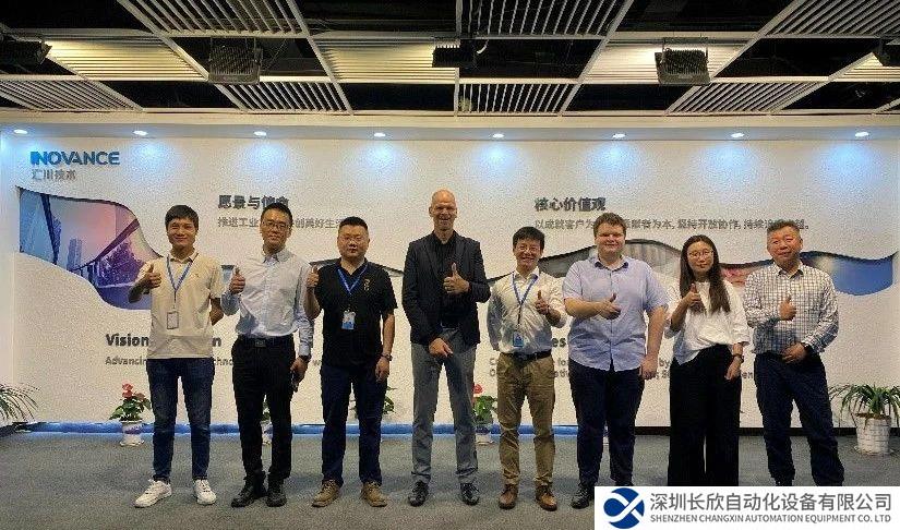 Komax&Schleuniger公司人員一行參觀了匯川技術(shù)展廳,以及匯川伺服與新能源汽車動力總成車間,并與匯川技術(shù)海外事業(yè)部及線纜行業(yè)負責(zé)人進行了深入的交流探討。