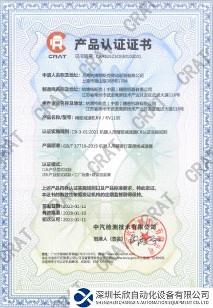 2023年,納博傳動(dòng)順利通過(guò)國(guó)家機(jī)器人檢測(cè)與評(píng)定中心(廣州)的CR認(rèn)證,獲得了國(guó)內(nèi)首張行星擺線減速器CR證書(shū),具有代表性意義。