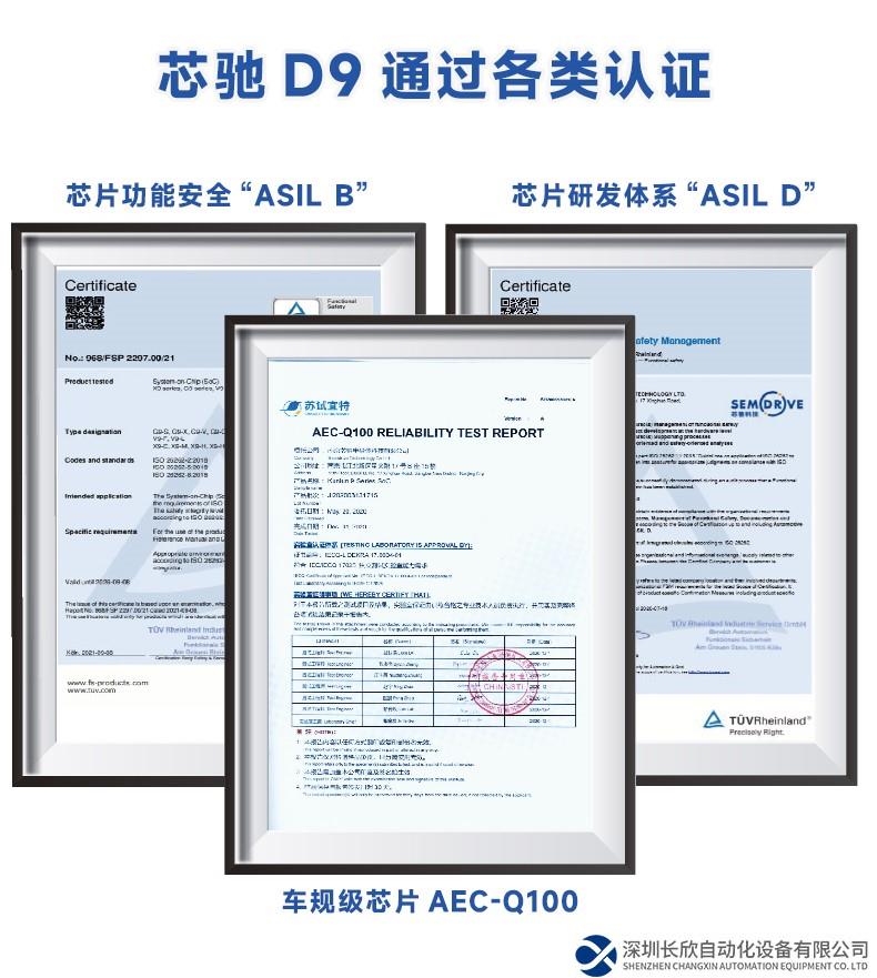芯馳D9國產(chǎn)車規(guī)級平臺通過各類認證,芯馳D9系列高安全性、車規(guī)級國產(chǎn)平臺,產(chǎn)品開發(fā)流程體系達到“ASILD,通過ISO26262ASILB功能安全產(chǎn)品認證、通過AEC-Q100車規(guī)級芯片的所有測試項目。
