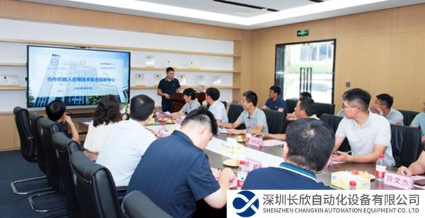 揭牌儀式后,廣東省科學(xué)院智能制造所高級工程師周謙就創(chuàng)新中心未來工作開展向到會嘉賓作了工作報告。他指出,創(chuàng)新中心主要圍繞協(xié)作機器人技術(shù),整合三方優(yōu)勢資源,開展協(xié)作機器人應(yīng)用技術(shù)協(xié)同創(chuàng)新、協(xié)作機器人標準工作站等關(guān)鍵技術(shù)研發(fā)創(chuàng)新,促進相關(guān)技術(shù)成果轉(zhuǎn)化,加快企業(yè)科技創(chuàng)新步伐,形成科企合作的強大合力,積極帶動區(qū)域產(chǎn)業(yè)集群的培育發(fā)展。